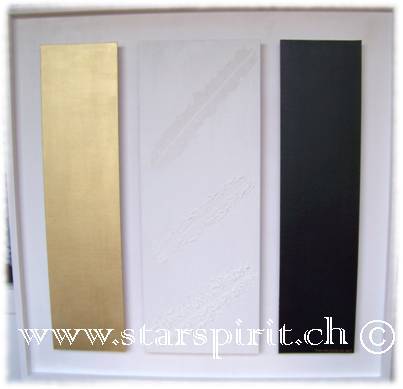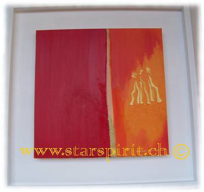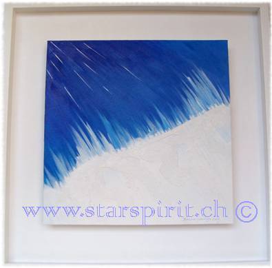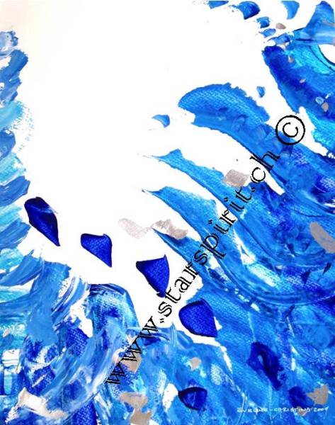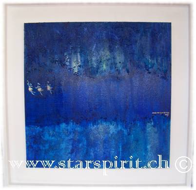 Hier führt uns die Künstlerin mit ihren Bildern in eine Welt der Farben, der Lichter, der Meere, des Himmels, der Unendlichkeit des Seins. Ihre Bildwerke sind aus Acryl, Kreide und Pigmente, sowie Aquarellstifte mit einem Hauch von Gold, Silber oder Kupfer geschaffen.